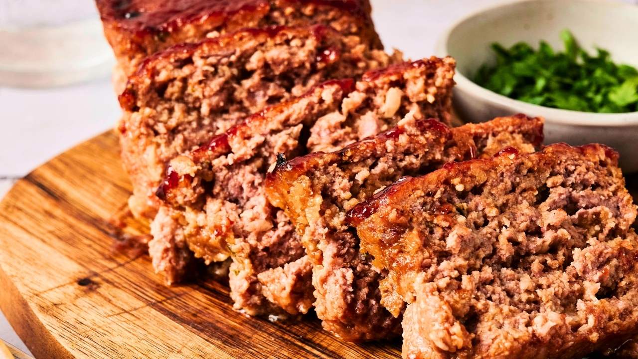 the ingredients are simple on purpose. ground beef eggs breadcrumbs onion,the magic is in ratios and method. dont overmix. use enough fat. let breadcrumbs form panade. apply glaze correctly. rest before slicing.